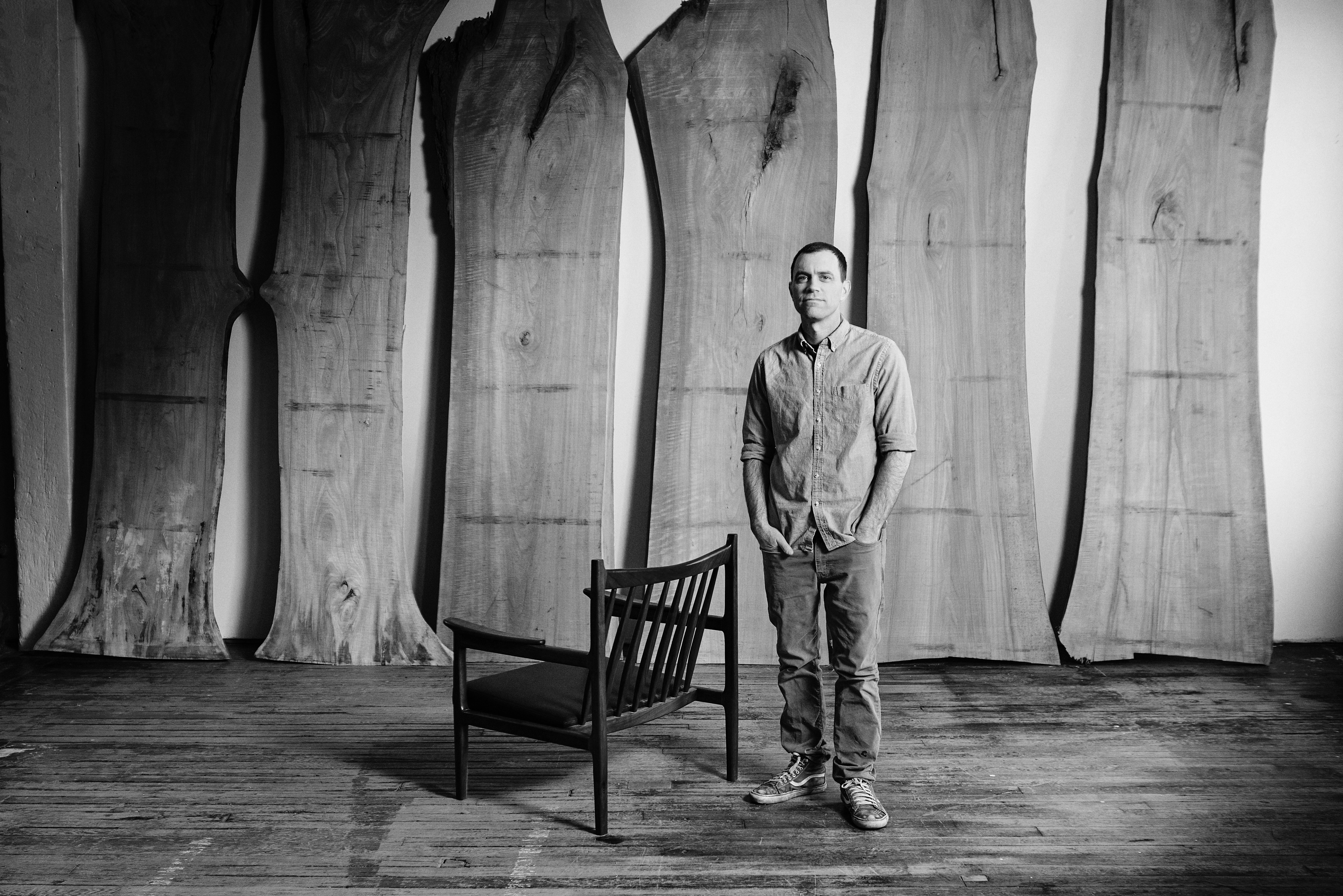 Jason Lewis grew up in a midwestern family of engineers and builders and has been making things with wood since he was a kid. He learned the craft and practice of building fine furniture as an apprentice to a local woodworker and then went on to found his own studio, doing custom projects and producing an ongoing line of original furniture. His work draws from the traditional fine woodworking technique he was trained in and the simple midcentury design that first inspired him. He lives and works in Chicago.